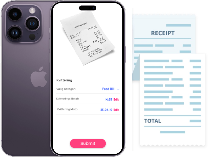 Refusion har aldrig været nemmere, scan dine kvitteringer med et enkelt klik i vores App, og vores kunstig intelligens software sørger for resten